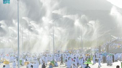 رذاذ الماء يتطاير لتلطيف الأجواء في عرفات