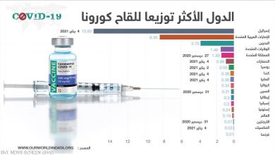 الدول الأكثر تطعيما لسكانها باللقاح.. والإمارات الثانية علي العالم
