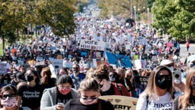 تظاهرت آلاف النساء في واشنطن ومدن أخرى في الولايات المتحدة يوم السبت 17 سبتمبر 2020 ضد مرشحة الرئيس دونالد ترامب…