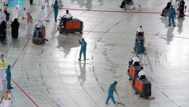 شؤون الحرمين تغسل صحن المطاف في 5 دقائق