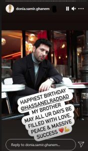 كما قامت النجمة دنيا سمير غانم، بتهنئة زوج أختها بعيد ميلاده، بنشر صورة له مصحوبة بتعليق عبر خاصية ستوري بحسابها الرسمي بموقع “انستجرام”، قائلة : ” اسعد عيد ميلاد علي اخويا ، يارب ايامك كلها مليئة بالحب و السلام و النجاح
