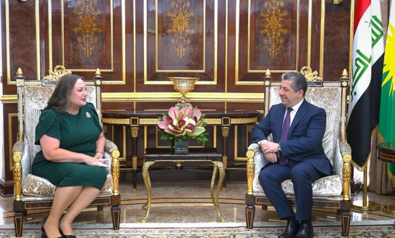 استقبل رئيس حكومة إقليم كردستان مسرور بارزاني، اليوم الأحد، في أربيل، القنصل العام الجديدة للولايات المتحدة الأمريكية لدى الإقليم ويندي غرين.