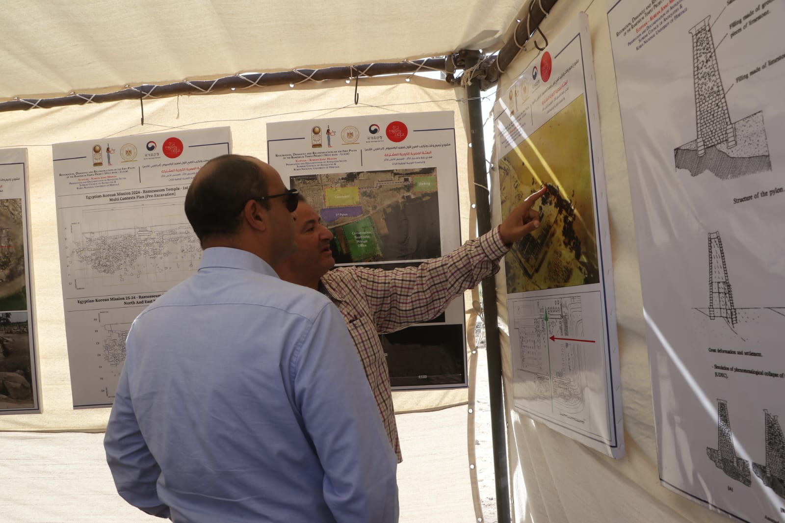 وقد رافق الأمين العام للمجلس الأعلى للآثار خلال الجولة كل من الأستاذ محمد عبد البديع رئيس قطاع الآثار المصرية، والدكتور عبد الغفار مدير عام آثار الأقصر، والدكتور بهاء عبد الجابر مدير عام أثار القرنة، والسيد جيسو كيم رئيس المشروع من الجانب الكوري، والسيد سيد الشورى المشرف علي الحفائر الأثرية بمكتب الأمين العام، وأعضاء البعثة المصرية الكورية والمصرية الإنجليزية، وعدد من مفتشي آثار القرنة والمرممين.