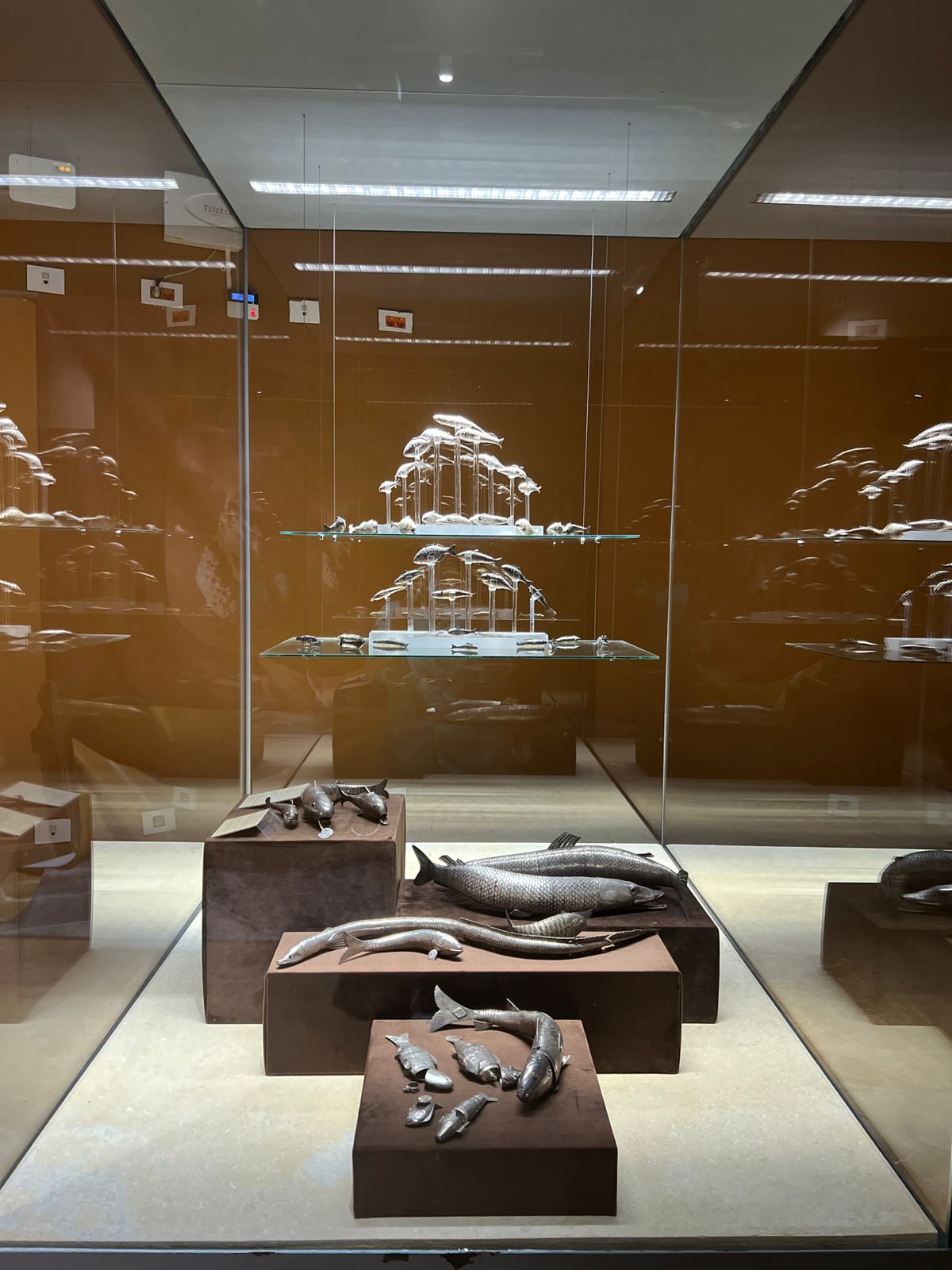 ويضم المعرض مجموعة متميزة من الحُلي والأواني الفضية والعملات، من أبرزها عُقد من الأسرة الثامنة عشرة بالدولة الحديثة، إلى جانب 742 عملة أثرية متنوعة تشمل عملات رومانية ودراهم عباسية وعثمانية. كما يضم المعرض مقتنيات فاخرة من عصر أسرة محمد علي من بينها ولاعة خاصة بالأميرة فوزية، وعلب سجائر مزخرفة، وقطع فضية مصممة على شكل أسماك مفصلية.