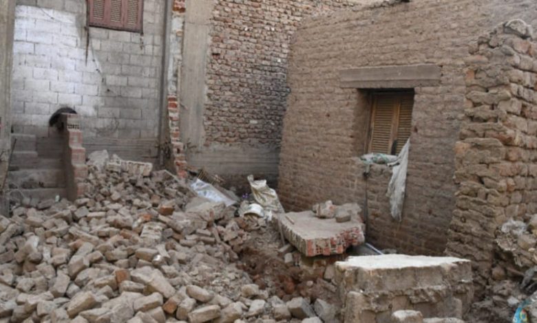 انهيار منزل من الطوب اللبن بعد ساعات من إخلائه بمدينة قوص بقنا دون إصابات