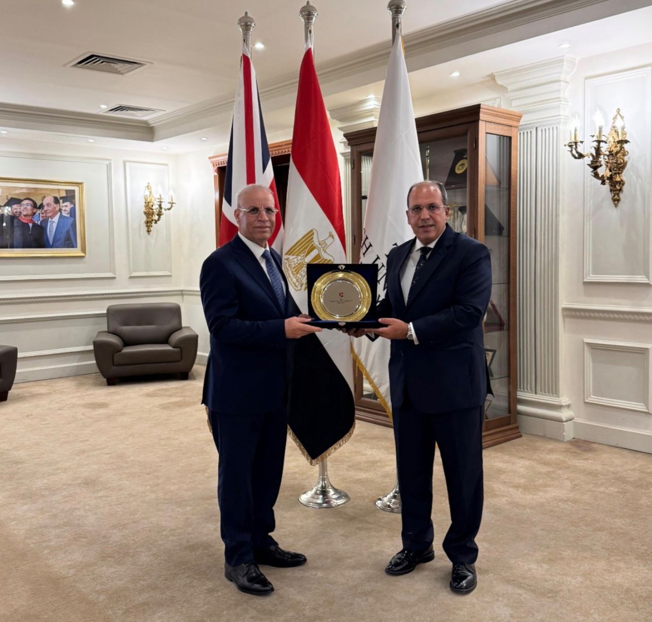 وفي ختام اللقاء، جرى تبادل الدروع التذكارية بين السفير ورئيس الجامعة، تأكيدًا على الرغبة المشتركة في توطيد التعاون الأكاديمي والثقافي بين الجانبين.