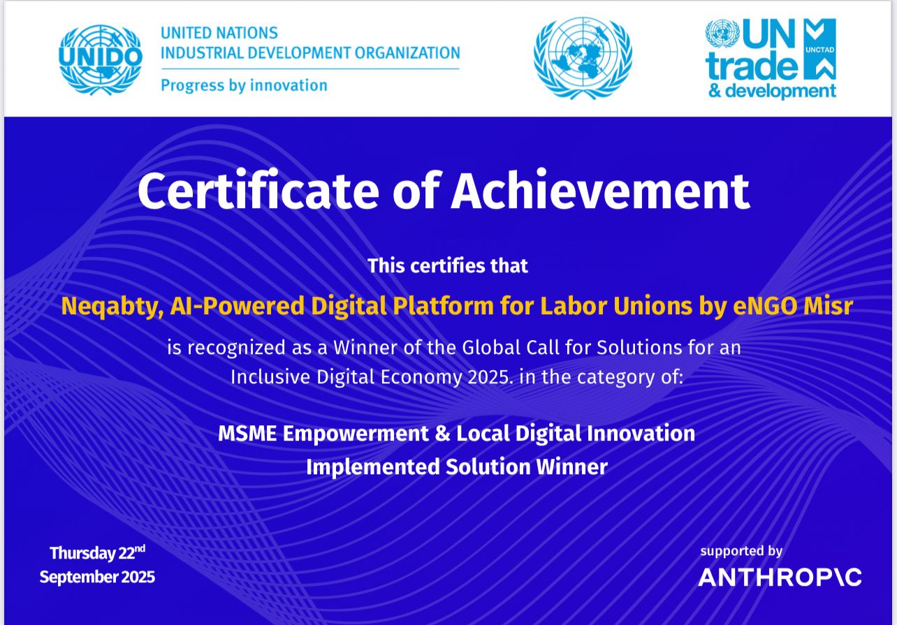 في خطوة تؤكد ريادة مصر في مجال التحول الرقمي والذكاء الاصطناعي، فازت شركة انجو مصر بجائزة منظمة الأمم المتحدة للتنمية الصناعية (UNIDO) ضمن المبادرة العالمية “من أجل اقتصاد رقمي شامل”، تقديرًا لحلولها المبتكرة التي تُعيد صياغة مفهوم تكنولوجيا القوى العاملة (Workforce Tech) في مصر والعالم العربي.