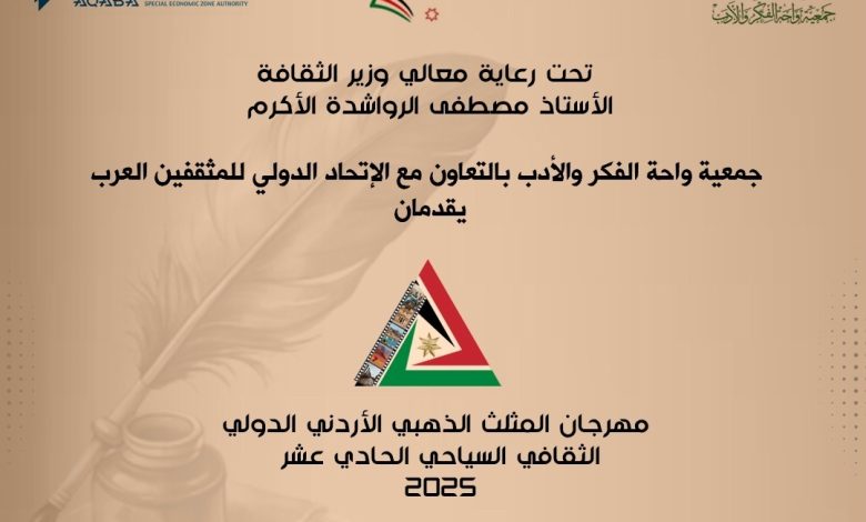 تنطلق فعاليات مهرجان المثلث الذهب بنسخته الحادية عشرة ، وبالتعاون مع الاتحاد الدولي للمثقفين العرب ، مساء يوم الأحد الموافق 26/10/2026 حيث سيقام حفل الافتتاح في المركز الثقافي الملكي تحت رعاية معالي وزير الثقافة مصطفى الرواشدة بمشاركة محلية وعربية، ويختتم فعالياته يوم 29/10/2025 في مدينة العقبة .