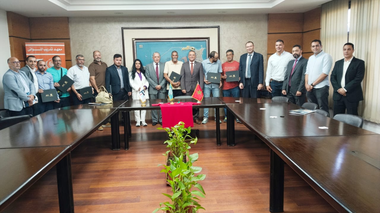 وحرص عميد معهد الموانئ على تكريم وفد المتدربين من المملكة المغربية الذين أنهوا برامجهم التدريبية بالمعهد بنجاح، في احتفالية شهدت أجواءً من الود والتقدير. وأشاد العميد خلال كلمته بالتزام المتدربين وجديتهم طوال فترة التدريب، مؤكدًا أن المعهد يعتز بالتعاون مع الأشقاء في المغرب في مجالات بناء القدرات وتأهيل الكوادر العاملة في الموانئ والنقل البحري، بما يعزز من تبادل الخبرات بين الدول العربية.
