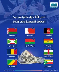 وأكد التقرير أن رصد المخاطر التمويلية يعد أداة استراتيجية للمستثمرين والشركات لتقييم بيئة الأعمال وتجنّب الأسواق ذات المخاطر المرتفعة خلال عام 2025.