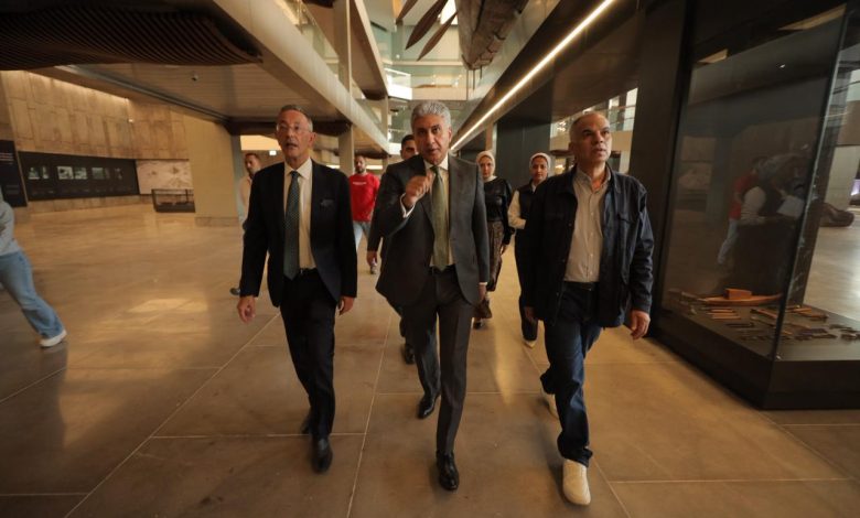 وقد رافق الوزير خلال هذه الجولات كل من الدكتور أحمد غنيم الرئيس التنفيذي لهيئة المتحف المصري الكبير، والأستاذة رنا جوهر مستشار الوزير للتواصل والعلاقات الخارجية والمُشرف العام على الإدارة العامة للعلاقات الدولية والاتفاقيات بالوزارة، والدكتور عيسى زيدان مدير عام الترميم ونقل الآثار بالمتحف.