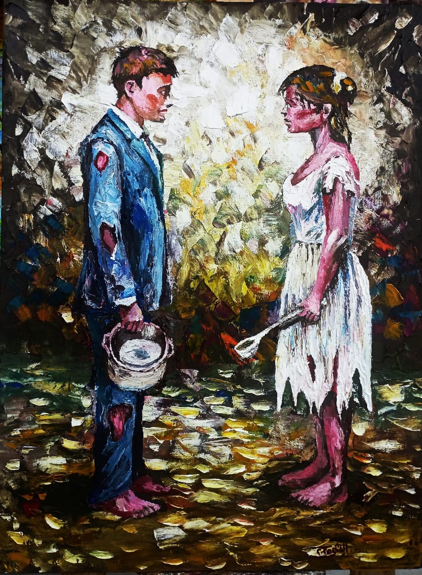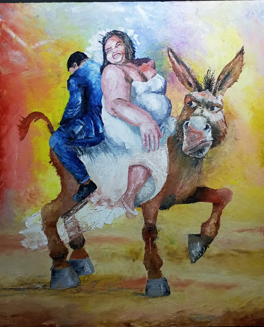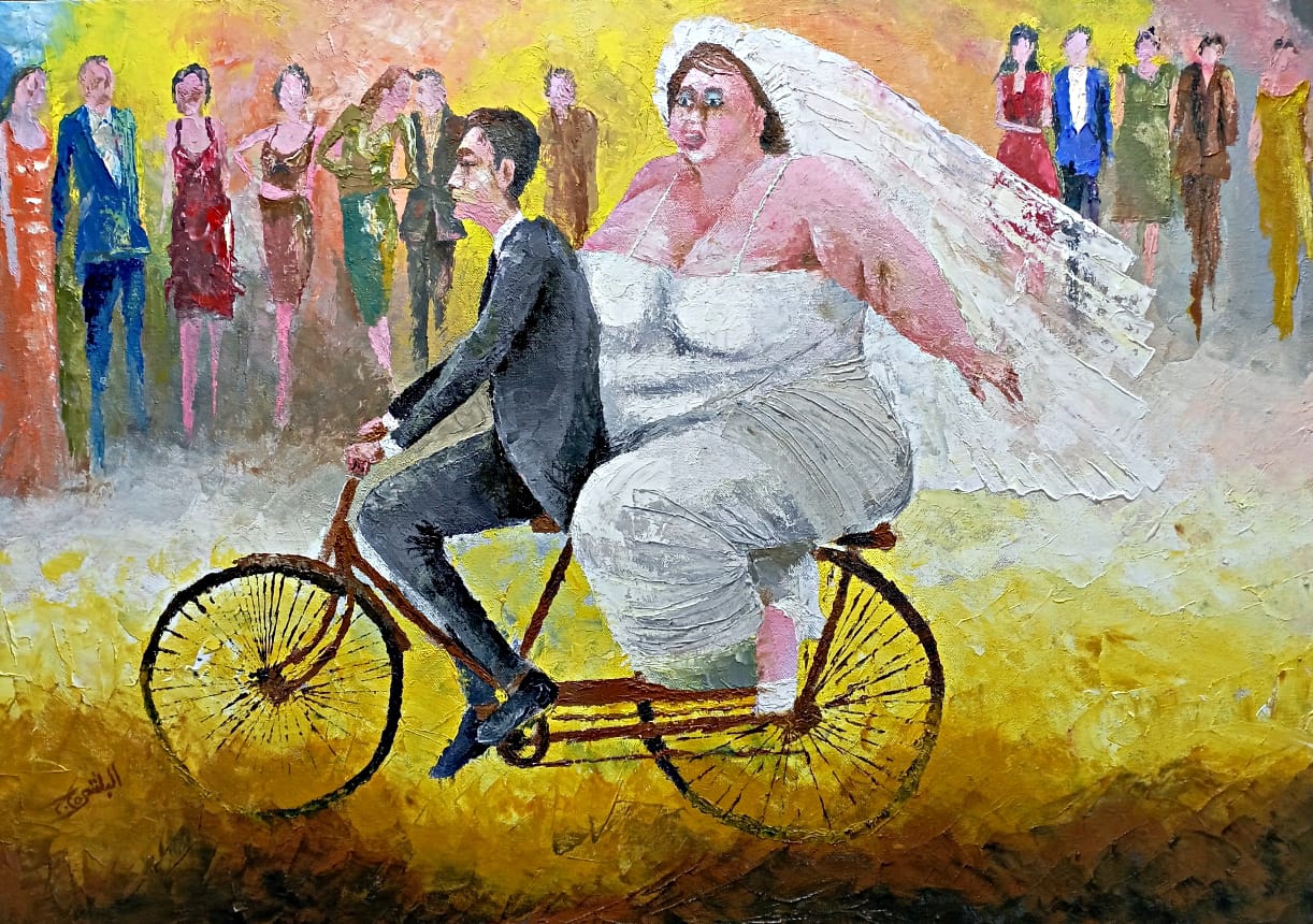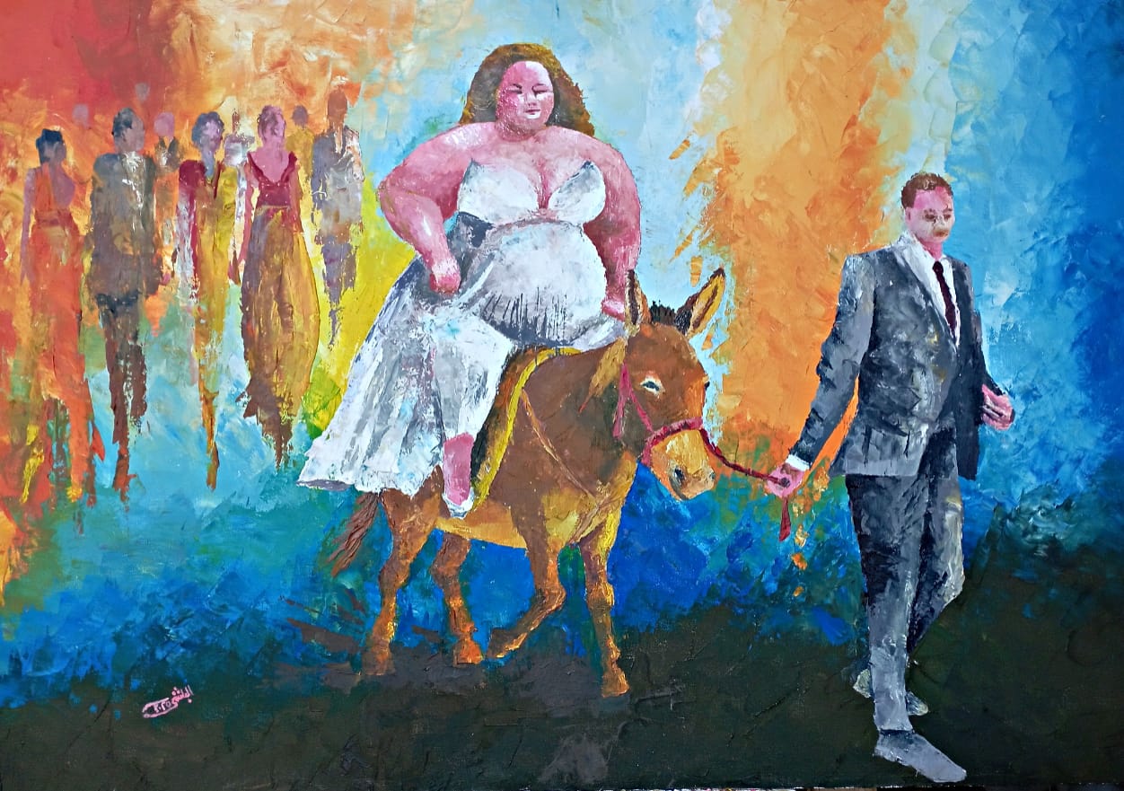 كل هذا يضعنا أمام خطاب جمالي مختلف على صعيد الصورة والتكوين، فالمرأة البدينة والرجل المستدق الملامح، الأبيض الناصع البياض هذا الفعل الأنطولوجي ما هو إلا خلق للعالم لا توصيف له. يقول هايدغر ” إن الفن ينصت إلى الكينونة وهي تعلن عن نفسها بالعمل”،
