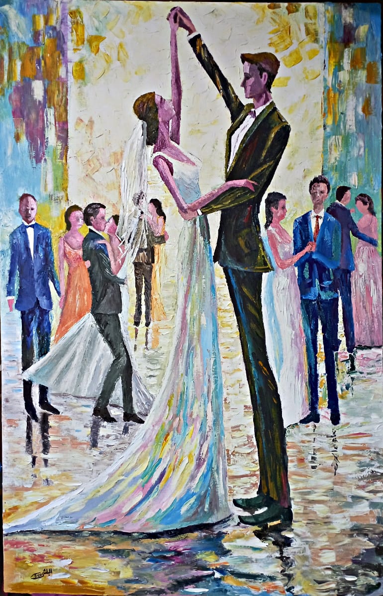 وعلية فإن البلشي عبر استحضاره طقوس الزفاف والوجوه البسيطة، والعلاقات الاجتماعية المألوفة، يفتح الكينونة المحلية على لحظة حضورها الجمالي، تلك اللحظة التي يصبح المألوف فيها شيئا يستدعي التفكير وطرح أسئلة الإبداع، فالجسد في أعمال البلشي مركزًا فلسفيًا أكثر من كونه موضوعًا بصريًا، المرأة الريفية، الفلاح، الراقصة، الطفل، العروس، والعريس ليست أجسادًا تصويرية بل تجسّد الوجود الشعبي في أقصى بداهته. وهنا نستدعي فلسفة موريس ميرلو-بونتي في «ظاهراتية الإدراك الحسي»، حيث الجسد ليس موضوعًا مرئيًا فحسب بل «نقطة إنبثاق العالم»؛ أي أن كل معنى يمر عبر الحواس والجلد والملمس، من الداخل إلى الخارج، هذا ما يفعله البلشي، الجسد كحقل تذكّر لا كجمالٍ مرئي، يتعامل مع الجسد كـ«أثر» (trace) بلغة جاك دريدا: حضورٌ مشوبٌ بالغياب، علامة لما لم يعد حاضرًا، إنه الغياب في أقصى درجات الحضور، لم يعد اللون معبرا عن الضوء، ولا واصفا للشكل، بل عن حالة نفسية تقترب من الذاكرة الطفولية والفرح البدائي، الألوان الساخنة عند البلشي ليست «سعادة» بل «استدعاء للحياة الأولى»؛ الحياة التي لم تُدرك بعد كحكاية والسر في تفاصيلها، الزمن يُستعاد عبر اللون لا عبر السرد فاللوحة ليست وسيلة تجميل، بل تكثيف الوجود.