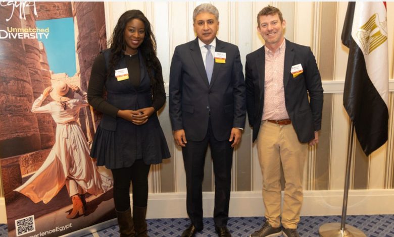 كما تحدث عن التطورات الجارية في مدينة سانت كاترين ومشروع التجلي الأعظم، مؤكداً أنه أحد أهم المشروعات البيئية والسياحية في المنطقة، بما يشمله من تطوير شامل للبنية التحتية والطرق والمطار والفنادق الجديدة، إضافة إلى تميزه بتقديم منتجات سياحية فريدة مثل سياحة التأمل وتسلق الجبال ومراقبة الطيور، وهي تجارب تلقى رواجًا متزايدًا لدى السائح الأمريكي الباحث عن الطبيعة والمغامرة.