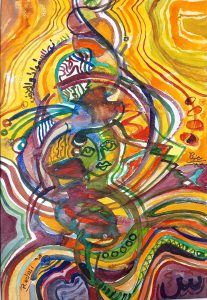 بدت أعمال الفنان الجديدة تبحث في معطيات الدائرة وبعد الحركة والديناميكية كانت آراء وتنظيرات رضوي الذي طبع مؤلفا يبدي فيه هذه التجربة، فكان يرسم علاقة بين التموجات الفكرية والشحنات الانفعالية – كما كان يقول – ضمنه كتابه (الحياة بين الفكر والخيال) 1981م الذي ضمنه لإيضاح ذلك – أيضا – رسومات وتخطيطات وآراء. فيقول في هذا السياق متحدثا عن أحد الأعمال (كل شيء في الحياة يدور ويدور ولكل إنسان أحلام وأمان يدور حولها).