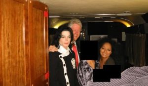 الرئيس الأمريكي بيل كلينتون والمغني الأمريكي الشهير مايكل جاكسون والمغنية الأمريكية ديانا روز في جزيرة إبستين.