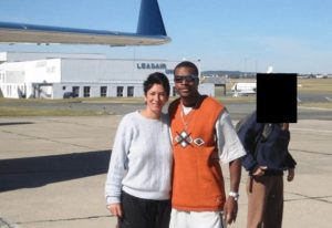 الممثل الأمريكي كريس تاكر نجم فيلم رش هاور ساعة الإزدحام يقف بجوار غيسلين إبستين بمطار الجزيرة.