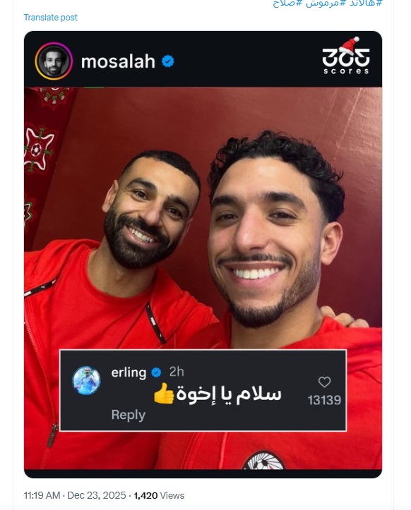 “سلام يا شباب”.. تعليق لافت من هالاند على ثنائية صلاح ومرموش في أمم أفريقيا
