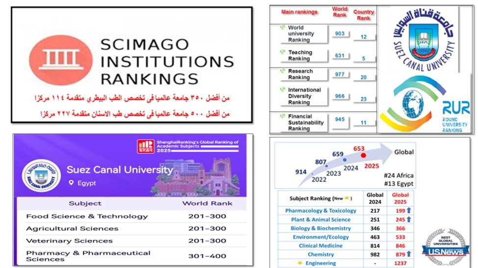 حصاد جامعة قناة السويس في التصنيفات الدولية لعام 2025 وفق تقرير وحدة التصنيف الدولي بمكتب التعاون الدولي….