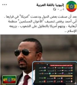 ومن الكرة إلى السياسة الدولية تحرك رئيس وزراء إثيوبيا آبي أحمد إلى دعم حركة الإخوان المسلمين الإرهابية عقب تصنيفها الإرهابي في الولايات المتحدة الأمريكية، وكتبت صفحة إثيوبيا بالعربي أن آبي أحمد يدعم الإخوان، ودأب آبي أحمد دعم الحركات الإرهابية حول العالم، وظهر ذلك في دعم آبي أحمد لحركة “الشباب” الإرهاببية في الصومال بينما قامت مصر بدعم الدولة الصومالية، وقضت على إرهاب تلك الحركة بالفترة الأخيرة.