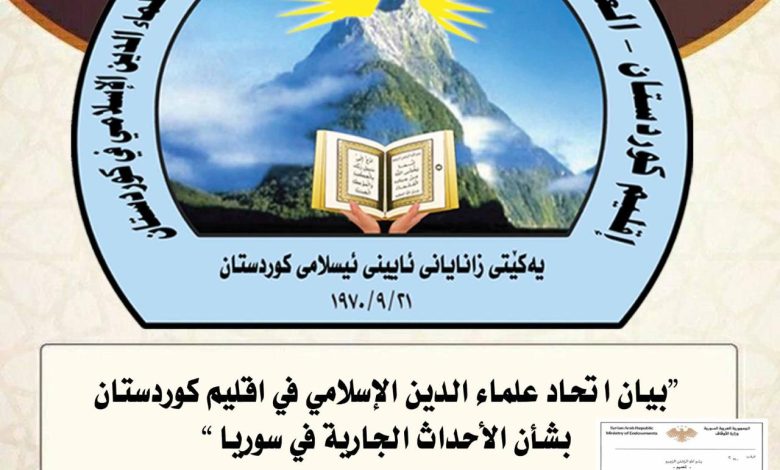 اتحاد علماء الإسلام بكردستان يصدر بيانًا هامًا بشأن تطورات الأوضاع في سوريا
