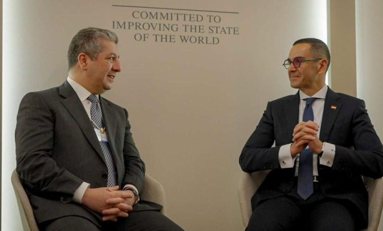 ضمن أجندة أعماله في المنتدى الاقتصادي العالمي، اجتمع رئيس حكومة إقليم كوردستان مسرور بارزاني، في دافوس، مساء الثلاثاء، مع وزير الاستثمار والتجارة الخارجية المصري حسن الخطيب.