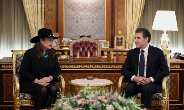 استقبل رئيس إقليم كوردستان، نيجيرفان بارزاني، الاثنين، في أربيل، القنصل العام للولايات المتحدة الأمريكية لدى إقليم كوردستان، غويندلن غرين.
