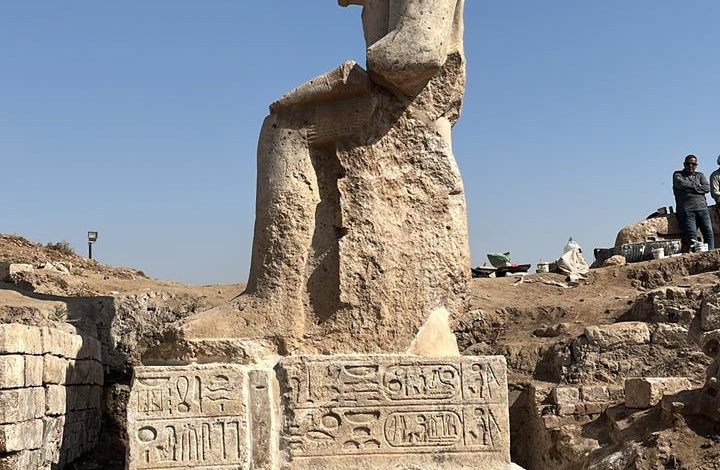 الانتهاء من أعمال ترميم وإقامة تمثال الملك رمسيس الثاني بمنطقة الأشمونين بالمنيا