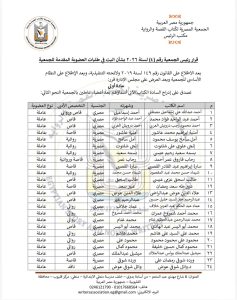 أعلنت الجمعية المصرية لكتاب القصة والرواية اعتماد نتائج أعمال شعبة القيد في دورتها الأخيرة، وذلك في إطار توجهات مجلس الإدارة لدعم الحركة الأدبية، واستقطاب الطاقات الإبداعية الجديدة، وتمكين الكتاب الشباب، مع الالتزام الكامل باللوائح المنظمة للعمل الثقافي والأدبي.