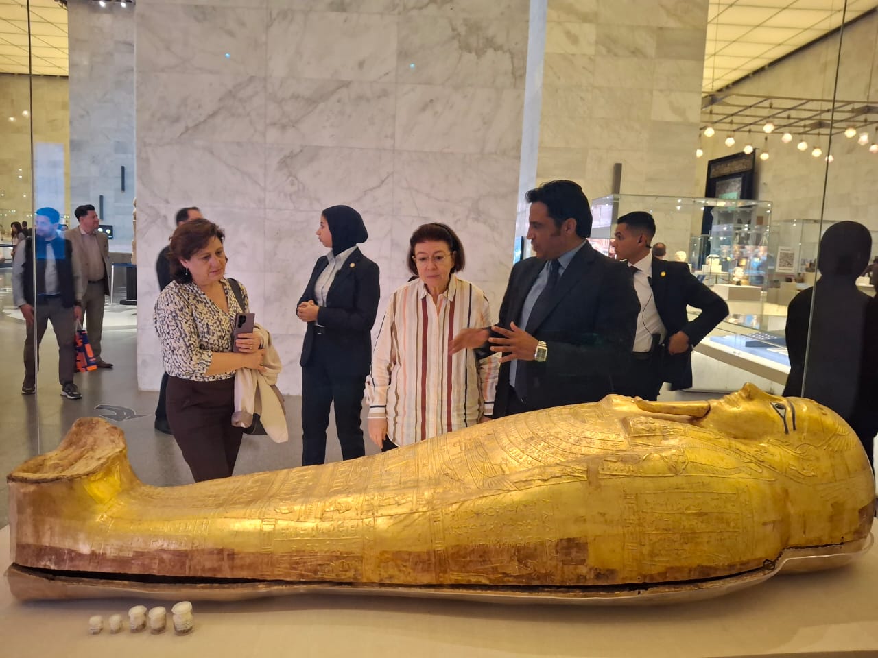 وتضمنت الزيارة جولة تفقدية داخل قاعات المتحف المختلفة، شملت قاعة العرض المركزي، وقاعة المومياوات الملكية، وقاعة النسيج المصري، حيث إطلعهوا على مقتنيات المتحف والتي تعكس ثراء وتنوّع الحضارة المصرية عبر آلاف السنين، بدءًا من عصور ما قبل التاريخ وصولًا إلى العصر الحديث.