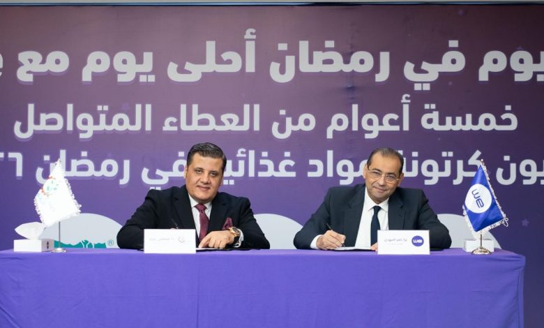 وقعت اليوم الشركة المصرية للاتصالات “WE” بروتوكولي تعاون مع مؤسسة مصر الخير، ومؤسسة صناع الخير للتنمية، لإطلاق واحدة من أكبر مبادراتها المجتمعية التي تستهدف توزيع مليون كرتونة مواد غذائية خلال شهر رمضان المبارك على مستوى الجمهورية وذلك في إطار حرص الشركة على مشاركة الشعب المصري أجواء الشهر الكريم، وتعزيز قيم التعاون والتكاتف بين أفراد المجتمع.