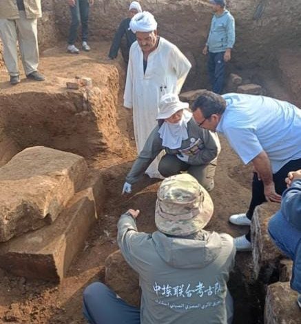 بعثة أثرية مصرية-صينية تكشف عن مبنى من الحجر الجيري يُرجّح انتماؤه لمعبد الملك أبريس بمنطقة ميت رهينة