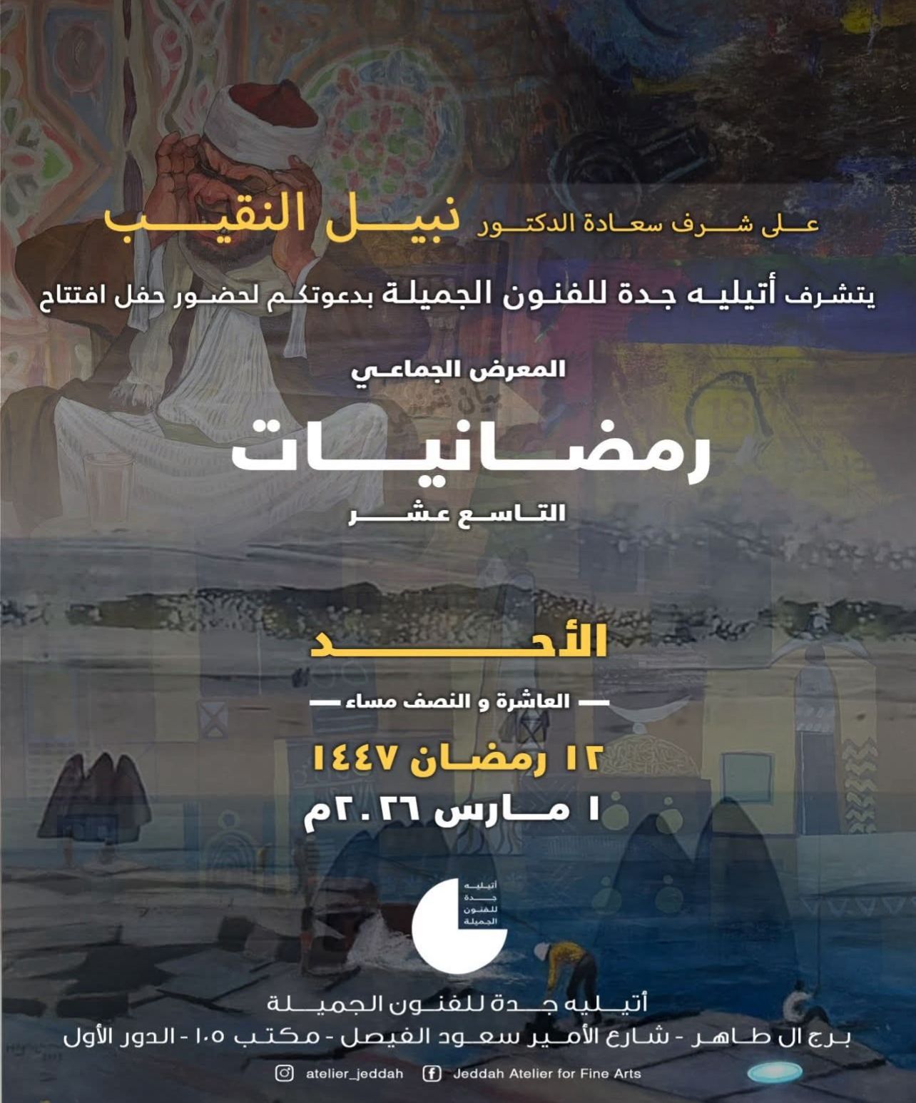 تستمر فعاليات المعرض حتى نهاية شهر رمضان، ويمثل المعرض تقليداً سنوياً يحرص أتيليه جدة في المملكة العربية السعودية من خلاله على التعرف على أعمال أهم الفنانين العرب تحت سماء جدة.