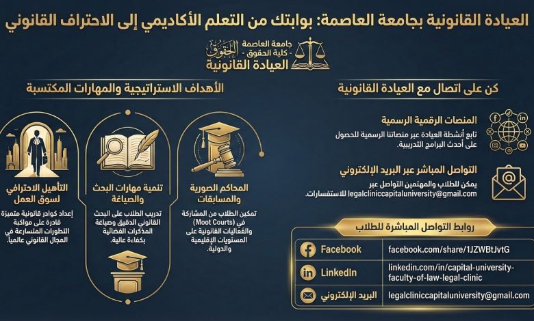 جامعة العاصمة تُطلق الصفحات الرسمية للعيادة القانونية بكلية الحقوق لتعزيز التدريب العملي وتأهيل الطلاب لسوق العمل القانوني