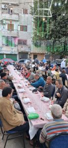تحت شعار إعادة القيم والمبادئ أقام مجموعة من شباب مدينة العمال بإمبابة مائدة إفطار للسنة الرابعة على التوالي تقدم خدماتها لما يصل ل 600 صائم يومياً طوال الشهر الكريم كما يتم توزيع 200 كرتونة مستلزمات غذائية للأسر الأكثر احتياجاً.