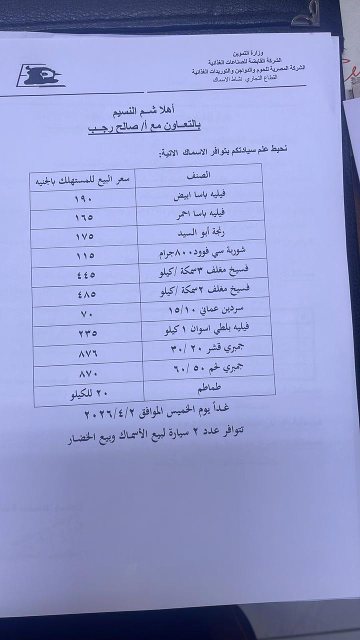 قال الكاتب الصحفي صالح رجب عضو الجمعية العمومية والمرشح السابق لعضوية مجلس النقابة ومنظم معرض أهلا رمضان إنه بداية من غدٍ الخميس الثاني من أبريل 2026 ستتوفر في معرض أهلا رمضان بالنقابة بمناسبة أعياد الأخوة الأقباط وشم النسيم، طماطم فاخرة بسعر عشرين جنيه للكيلو وأسماك مغلفة وفسيخ ويؤدين وجمبري جامبو وسمان وبط في معرض أهلا يا رمضان بنقابة الصحفيين.