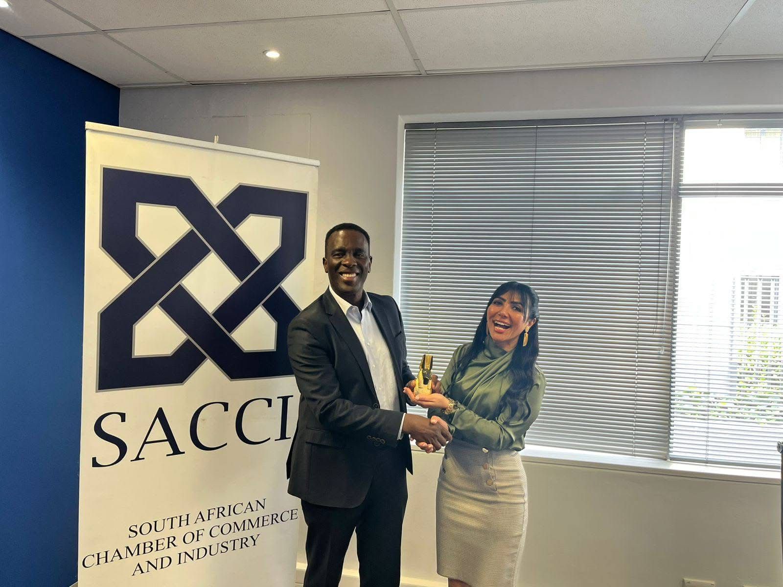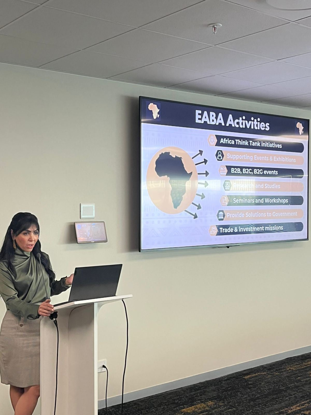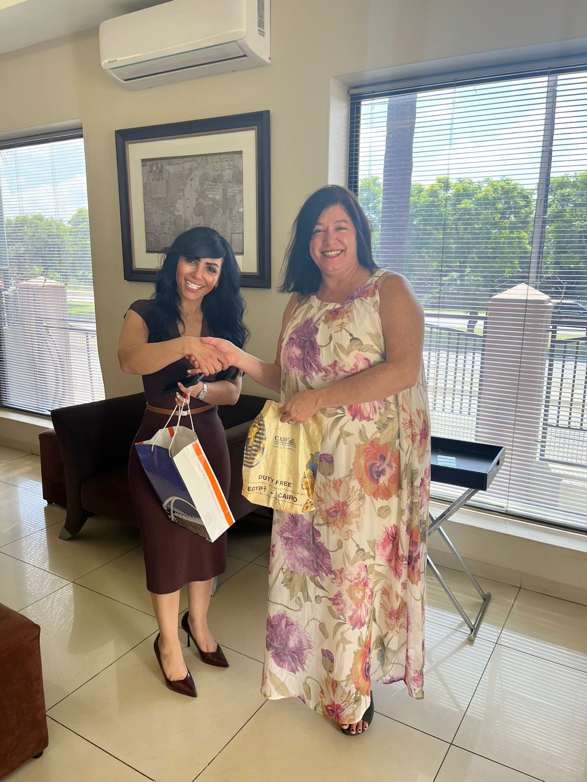 ثم انتقلت الديهي إلى اجتماع تنسيقي هام تم إعداده بعناية مع مكتب الجمعية بالقاهرة للاجتماع مع غرفة التجارة والصناعة SACCI، وتم تقديم عرض تقديمي حديث (Presentation) عن الجمعية، بحضور السيد دانيال مواتيشي، مندوب الجمعية في جنوب أفريقيا.