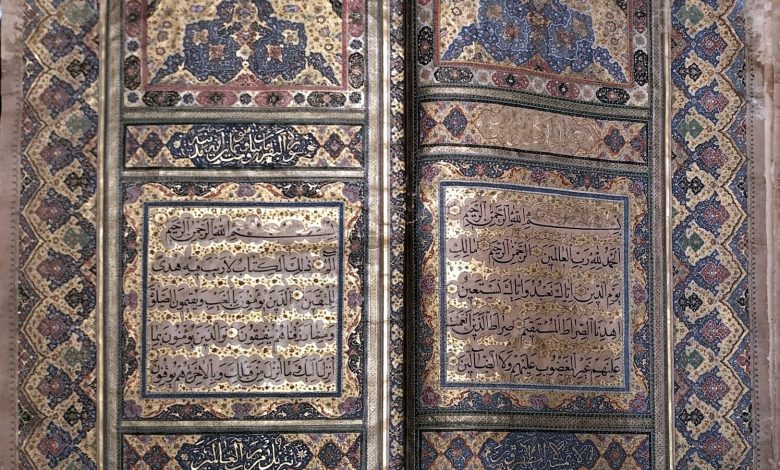 متحف سوهاج: يعرض مصحفًا شريفًا من العصر العثماني (1242هـ)، مزينًا بزخارف نباتية مذهبة، ويحتوي على صفحات افتتاحية مزخرفة وسورة الفاتحة وبداية سورة البقرة.