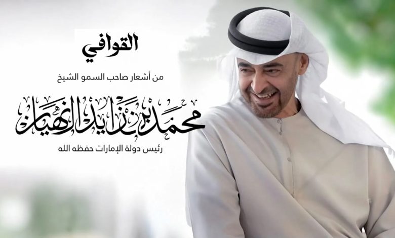 تجسد كلمات أغنية «القوافي» مشاعر وطنية راسخة يعيشها المواطن الإماراتي، وتعكس بوضوح حالة التماسك المجتمعي واللحمة الوطنية. تعتمد القصيدة على المفردة الإماراتية الأصيلة والصور الشعرية التي تبرز قيم الشجاعة، الحكمة، والسلام،