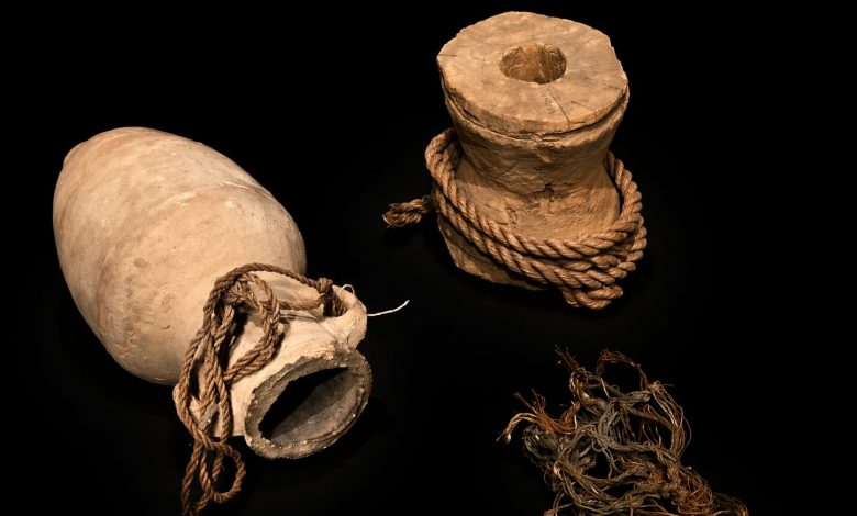 وأضاف إنه من بين المعروضات كرسي بدون مسند، جرة فخارية مزودة بحبل، زوج من الصنادل المصنوعة من خوص النخيل المجدول، سلال مجدولة بأشكال مختلفة، منها أسطواني الشكل مزود بحبل للتعليق وأخرى بغطاء محكم، بالإضافة إلى بكرة خشبية بحبل، وحبات من ثمار حب العزيز، وعقد من الخوص من منطقة ذراع أبو النجا، إلى جانب ثمرتي بلح ومجموعة من السلال والأغطية المصنوعة من الخوص.