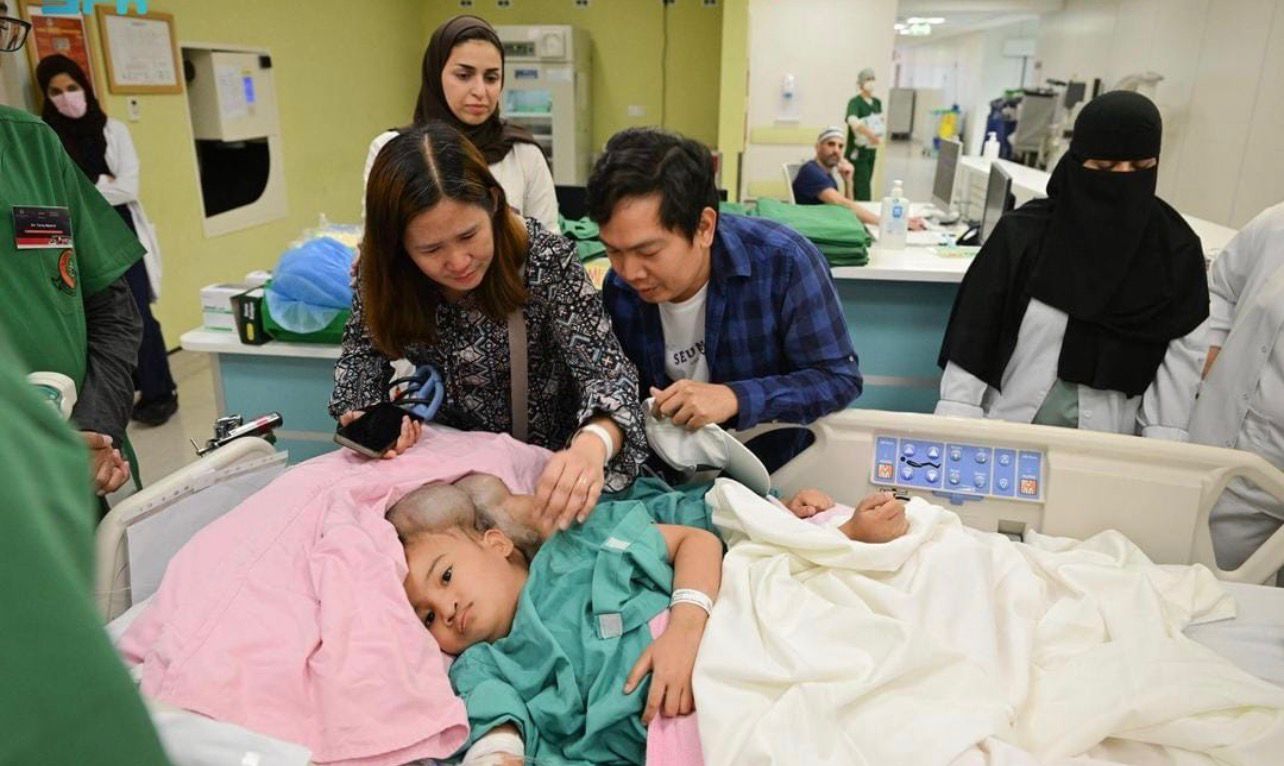 وأوضح المشرف العام على مركز الملك سلمان للإغاثة والأعمال الإنسانية رئيس الفريق الطبي والجراحي التابع للبرنامج الدكتور عبدالله بن عبدالعزيز الربيعة، في تصريح صحفي، أن التوأم الملتصق الفلبيني “كليا وموريس آن” بمنطقة الرأس، قدِمتا إلى المملكة في 17 مايو 2025م، وبعد دخولهما إلى المستشفى قام الفريق الطبي بإجراء فحوصات دقيقة ومتعددة لهما، وعقد عدة اجتماعات توصل من خلالها إلى أن حالة التوأم تُعد من أكثر الحالات تعقيدًا على مستوى العالم، نظرًا لعدة عوامل طبية من أبرزها وجود وضعية زاوية معقدة للرأسين، واشتراك واسع في الجيوب الوريدية الدماغية، وتداخل نسيج الدماغ بين الطفلتين، بالإضافة إلى أن الطفلة “كليا” كانت تعاني من قصور في عضلة القلب وضمور شديد في الكليتين مع فشل كلوي تام؛ مما يؤدي إلى رفع مستوى الخطورة الجراحية بشكل كبير.