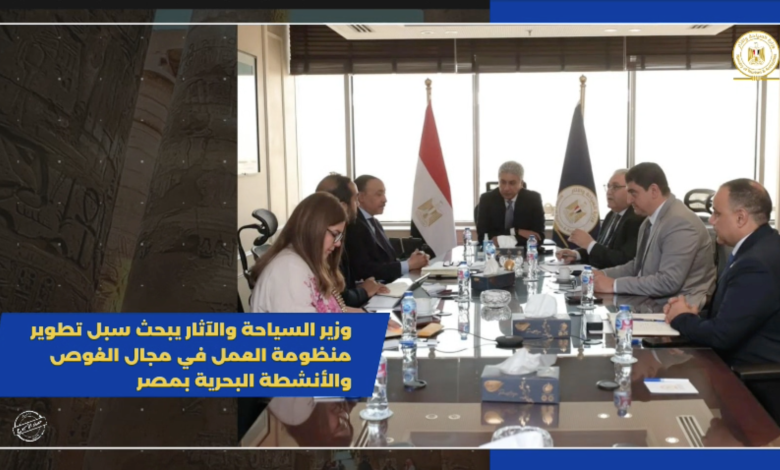عقد وزير السياحة والآثار، اجتماعاً لمناقشة سبل تطوير منظومة العمل في مجال الغوص والأنشطة البحرية في مصر، ومراجعة وتحديث الضوابط المنظمة للعمل به بما يواكب المعايير الدولية ويضمن تحقيق أعلى مستويات الجودة والسلامة، وتطوير منتج سياحة الغوص.