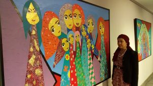 فيما تشارك الفنانة آلاء نجم بمعرضها “أبواق الملائكة” وتقدم فيه 43 لوحة، وهى فنانة تشكيلية معاصرة خريجة كلية التربية الفنية عام 2003 ونظمت العديد من الدورات الفنية لتعليم الفنون التشكيلية وشرح أسلوب أعمالها المميزة التى تتناول قضايا عديدة إنسانية وإجتماعية وفى كثير من أعمالها تتحدث عن قضايا سياسية، ولها مشاركات محلية ودولية أيضا، وحصدت جائزة من المجلس الأعلى للثقافة فى 2007 .