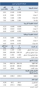 سجلت سندات الخزانة الأمريكية خسائر في ظل اضطراب الأسواق للأسبوع الثاني علي التوالي، خاصة السندات ذات الآجال الأطول حيث استمرت خسائر السندات ذات أجل 10 سنوات، و30 سنة للأسبوع السابع على التوالي للوصول إلى مستويات لم تشهدها الأسواق منذ أكثر من عام، فقد شهد مطلع الأسبوع ارتفاعًا في عوائد سندات الخزانة بسبب زيادة مخاوف التضخم بعد أن أقر مجلس الشيوخ حزمة تحفيز مالية بقيمة 1.9 تريليون دولار يوم السبت الماضي، لكن العوائد تراجعت في وقت لاحق من الأسبوع حيث استغل المستثمرون انخفاض الأسعار واتجهوا لشراء سندات الخزانة يوم الثلاثاء. بالإضافة إلى ذلك، فإن الطلب الجيد على مزاد السندات ذات أجل 10 سنوات خلال الأسبوع، الى جانب ورود بيانات مؤشر أسعار المستهلكين والتي جاءت أقل من المتوقع، ساعد على استقرار عوائد السندات. ومع ذلك، شهدت نهاية الأسبوع ارتفاعًا في العوائد حيث تصاعدت مخاوف التضخم مرة أخرى بعد أن وقع بايدن على قرار بشأن حزم التحفيز المالي ليصبح قانونًا ساريا.