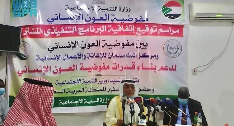 وقع مركز الملك سلمان للإغاثة والأعمال الإنسانية ومفوضية العون الإنساني فى السودان على البرنامج التنفيذي المشترك لبناء قدرات المفوضية بحضور وزير التنمية الاجتماعية السوداني أحمد آدم بخيت وسفير خادم الحرمين الشريفين لدى السودان علي بن حسن جعفر.