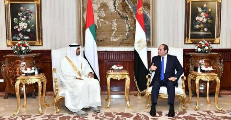 جاء ذلك خلال جلسة مباحثات عقدها الرئيس المصري وولي عهد أبوظبي في القاهرة، خلال زيارة قام بها الشيخ محمد بن زايد آل نهيان السبت.