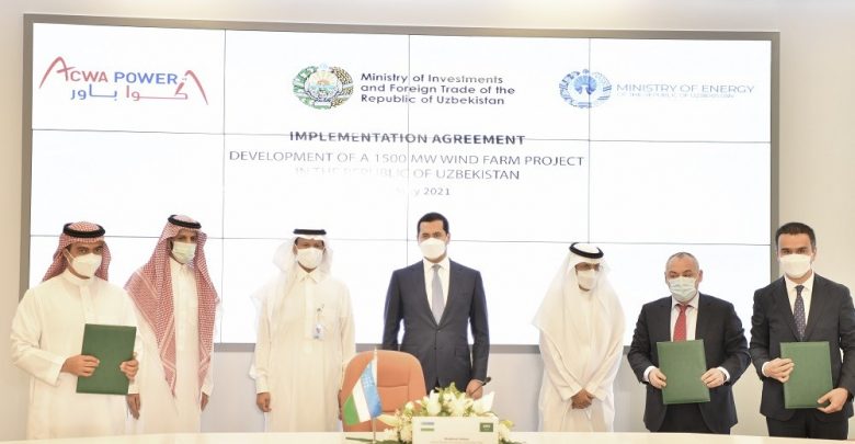 أكوا باور السعودية توقع اتفاقية لبناء وتشغيل محطة طاقة رياح بقدرة 1500 ميجاوات في أوزباكستان