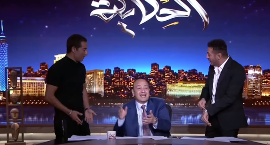 ورقص الفنانان على أنغام الأغنية الخاصة بتتر المسلسل قبل الخروج لفاصل إعلاني قبل الحوار بعد تقديم عمرو أديب الفقرة الحوارية الخاصة بالبرنامج، مع ضيفيه.