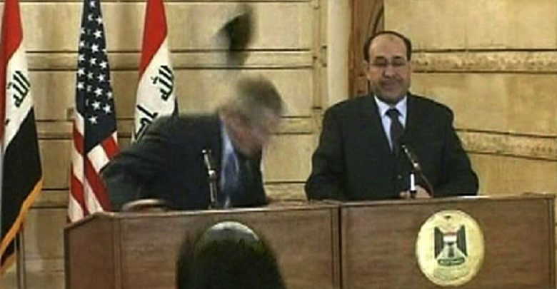 أبرز هؤلاء، الرئيس الأميركي السابق جورج بوش، الذي جرى قذفه بحذاء من قبل مراسل عراقي، أثناء انعقاد مؤتمر صحفي في بغداد عام 2008.