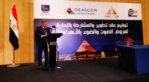ومن جانبه، صرح المهندس نجيب ساويرس العضو المنتدب لشركة أوراسكوم الاستثمار القابضة: ” لنا الفخر في التوقيع علي هذا العقد مع وزارة قطاع الأعمال وتنفيذ هذا المشروع القومي لتطوير عروض الصوت والضوء والمنطقة المخصصة للعرض بمنطقة الأهرامات التي تعد أهم منطقة جذب سياحي في مصر والعالم. إن هدفنا هو الارتقاء بمستوى الخدمات المقدمة والاستعانة بأحدث وسائل التكنولوجيا في الإدارة والتشغيل لتحويلها إلي منطقة ترفيهية عالمية لجذب الزوار لزيارتها أكثر من مرة، كما نعمل علي تطوير المنطقة المحيطة لتكون خير واجهة لمصر”.